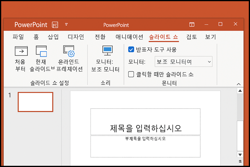 자 그럼 파워포인트에서 "발표자 도구"를 활성화하는 방법을 설명드릴게요.