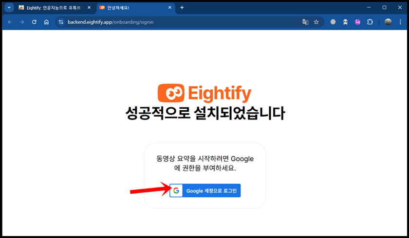 확장프로그램 설치가 완료되었어요. 간단하죠? 이제 "Google 계정으로 로그인"버튼을 클릭하여 여러분의 구글 계정 로그인을 진행해 주세요.