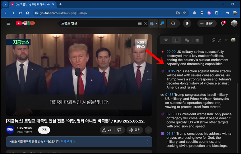 위 사진처럼 타임아린별로 AI가 자동으로 해당 영상에 대한 주요 내용을 정리해 줘요. 신기하죠?