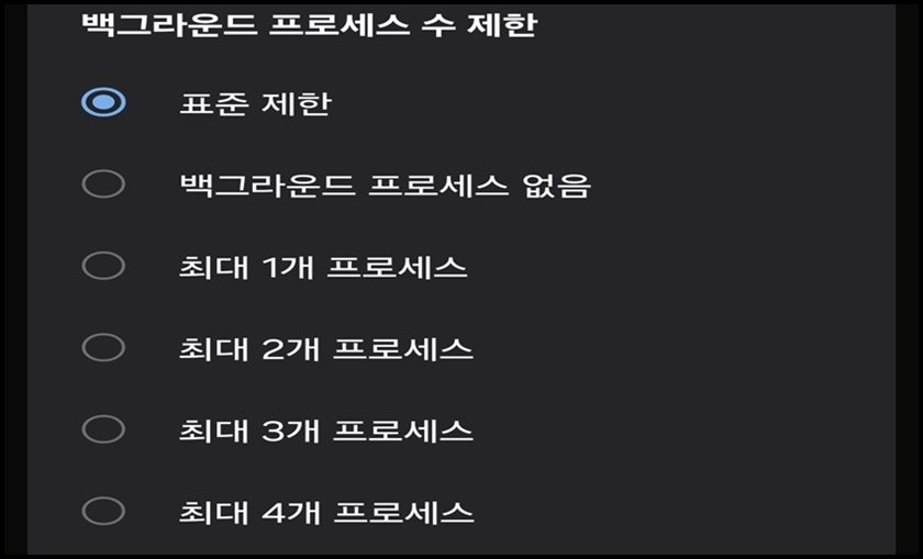 "백그라운드 프로세스 수 제한"메뉴를 클릭해 주세요.
