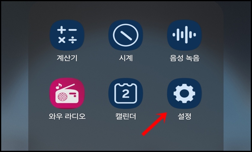 다음은 설정에서 앱 사용기록 삭제방법이에요. 먼저 여러분의 스마트폰에서 "설정"메뉴로 들어가 주세요.