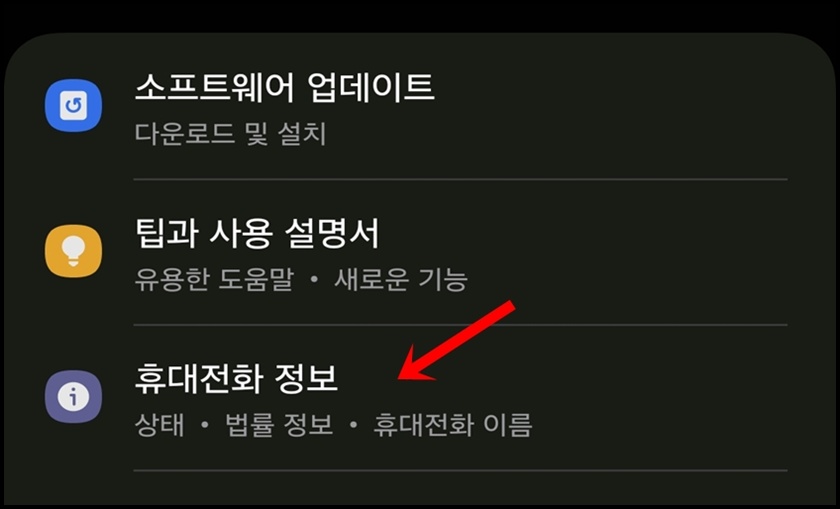 휴대전화 정보 메뉴로 들어가 주세요.