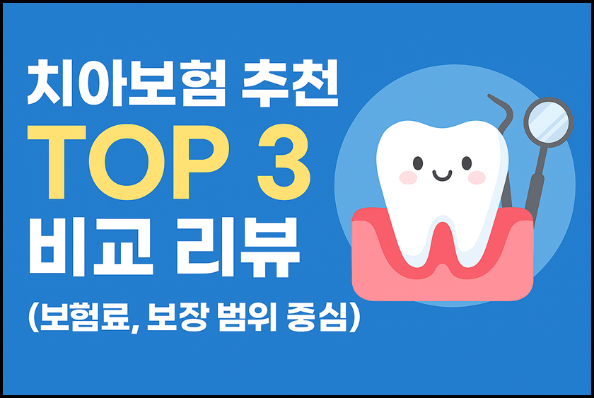 안녕하세요. 오늘도 휴잉의 블로그를 찾아주신 여러분 감사드려요. 오늘 제가 포스팅할 내용은 "치아보험 추천 TOP3 비교 리뷰(보험료, 보장 범위 중심)"에 대해 포스팅해보려고 해요. 치아 치료비는 건강보험이 일부만 적용되기 때문에, 스케일링을 넘어 충치치료, 임플란트, 크라운, 브리지 등 고가 진료가 필요한 경우엔 본인 부담이 뙈 커요. 그래서 최근엔 치아보험을 미리 준비해 두려는 사람들이 부쩍 늘어나고 있죠. 그런데 치아보험은 종류도 많고 보장도 다 달라서 어떤 상품을 골라야 할지 고민이 많으실 거예요. 그래서 오늘은 실제 보험료와 보장범위를 기준으로 2025년 기준 추천 치아보험 TOP3을 비교 분석해 드릴게요.