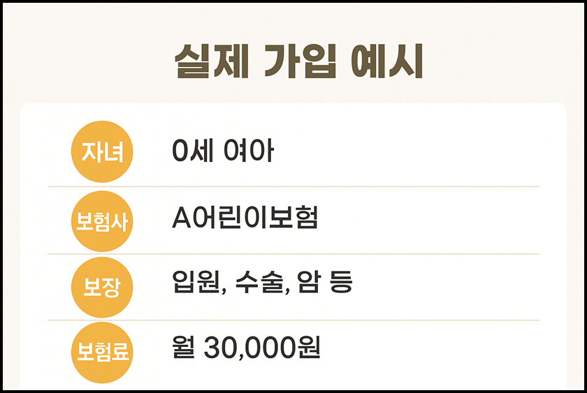 예시 A) 5살 아들을 둔 부모 A 씨는 삼성화재 '마이헬스 어린이보험'을 가입했어요. 최근 아들이 계단에서 넘어져 발목을 다쳐 입원했는데, 입원비 60만 원 중 보험으로 45만 원을 보장받을 수 있었어요. 여기에 소아 ADHD진단까지 받아 정신건강 특약으로 약값 보장도 받을 수 있었죠. 보험 가입 전보다 훨씬 덜 걱정하며 아이를 돌볼 수 있었다고 해요.