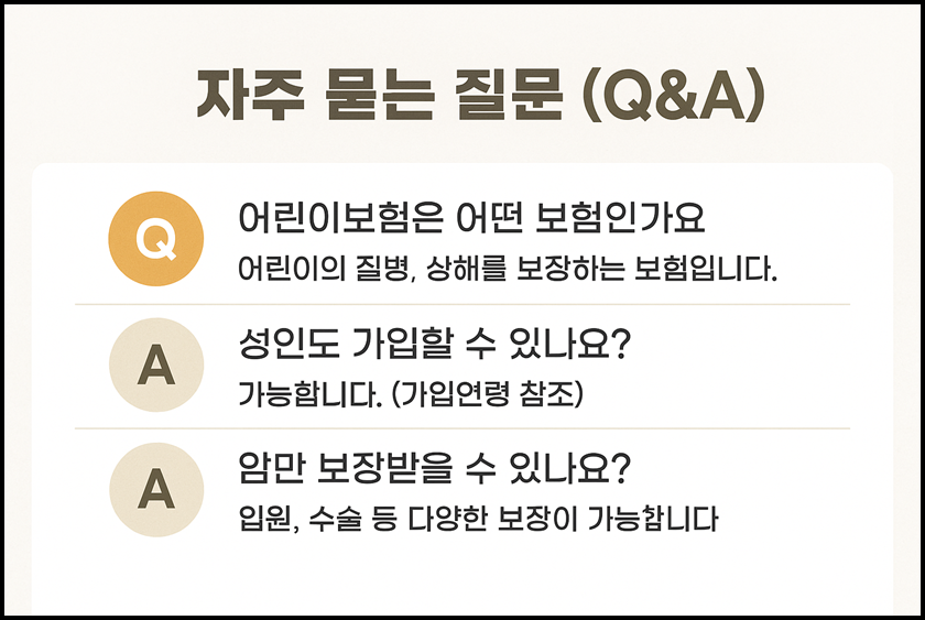 ◈ 어린이 보험 가입 가능하지만, 담보 제한 및 보험료 증가로 실익은 낮아질 수 있음.