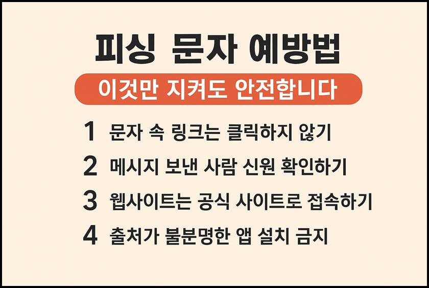 - 의심스러운 링크는 절대 클릭하지 말고, 해당 기관 공식 홈페이지나 앱으로 직접 확인하세요.