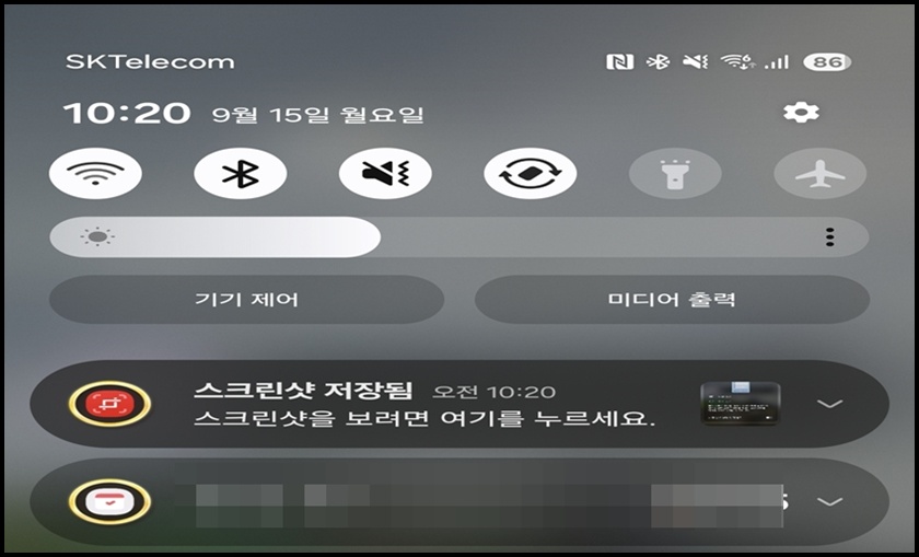 짜잔!! 이제 스마트폰의 상단을 내리 지면 빠른 설정창과 알림 창을 한꺼번에 확인할 수 있어요. 아주 좋은 꿀팁이죠?