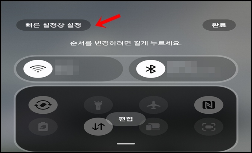 페이지 상단의 "빠른 설정창 설정"메뉴를 클릭해 주세요.