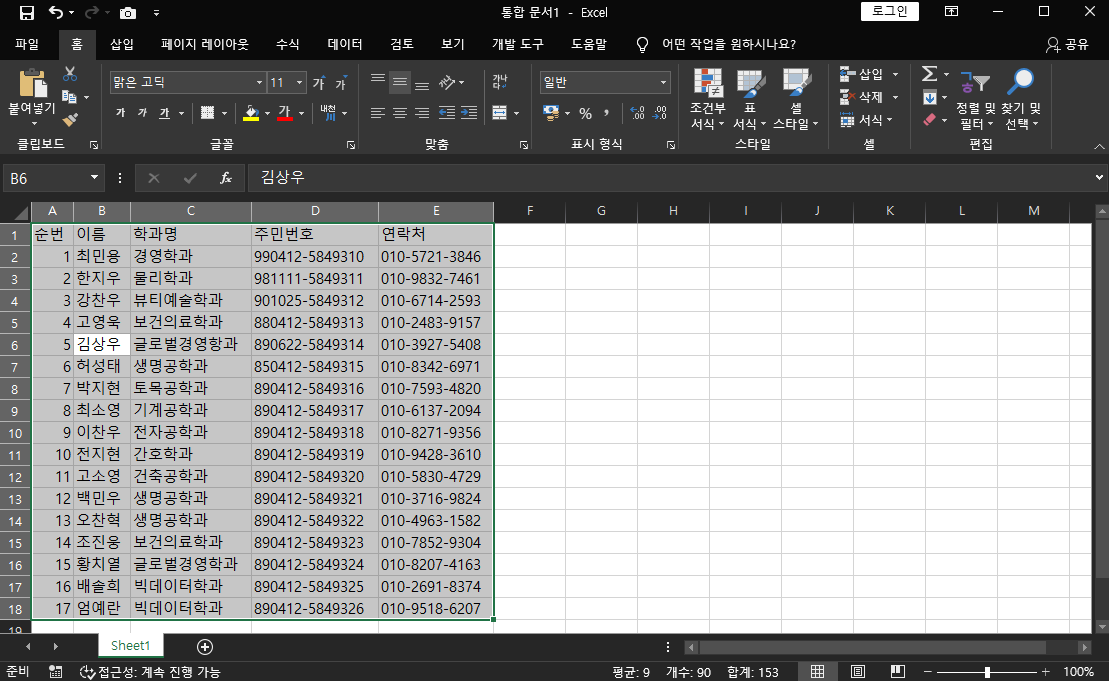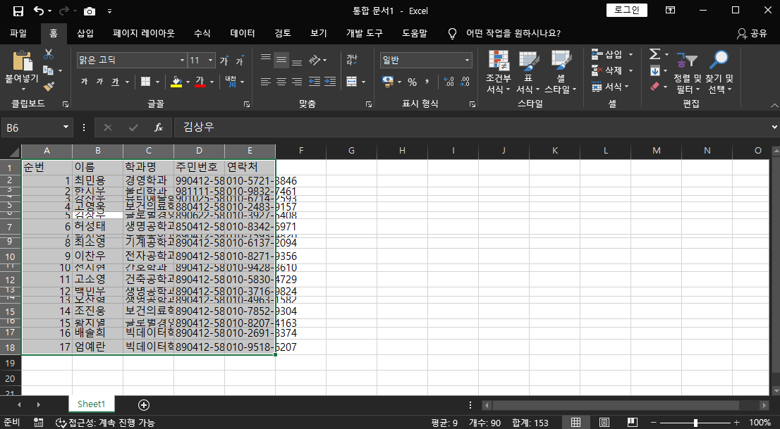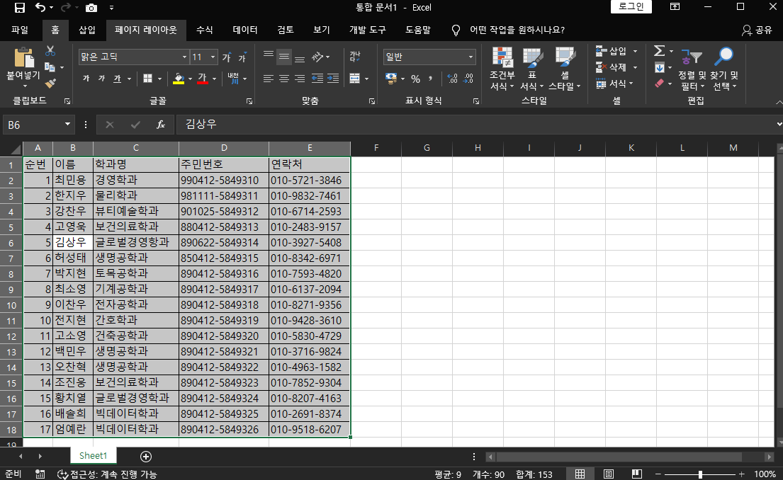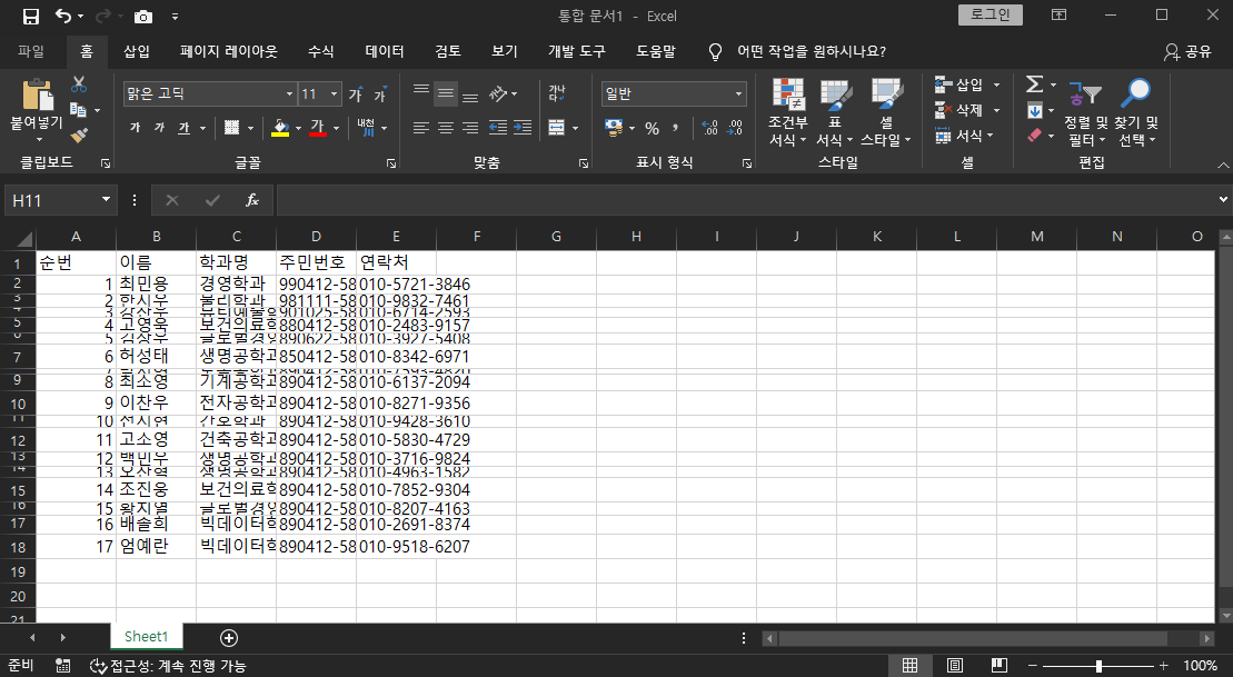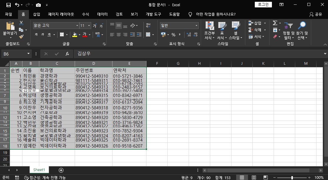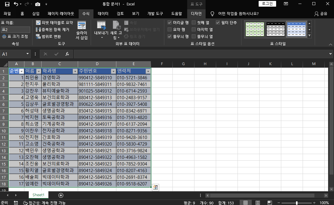 짜잔!! 열 너비가 맞춰졌어요. 신기하죠?