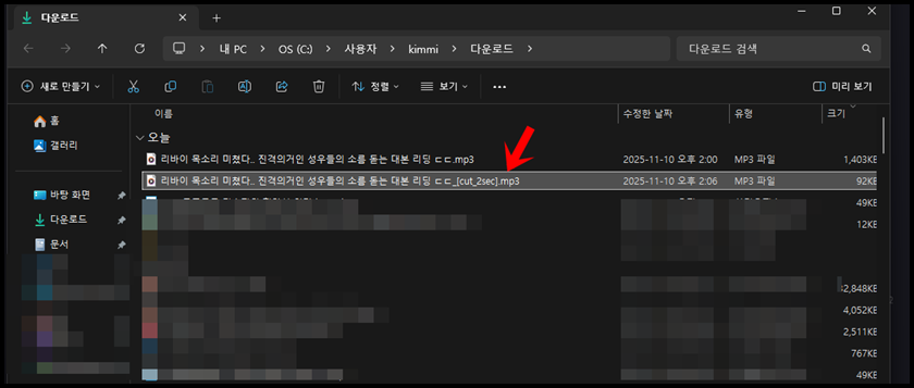 저장을 하게 되면 위 사진처럼 mp3 파일로 저장되게 되요. 참 쉽죠?