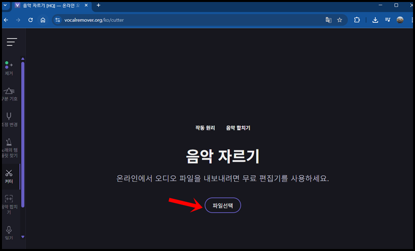 이제 사용방법을 설명드릴 텐데 아주 간단해요. 먼저 위 링크를 클릭하여 Vocal Remover"홈페이지에 접속을 해주세요. 웹사이트 접속 후 왼쪽의 "커터"메뉴를 클릭해 주세요.