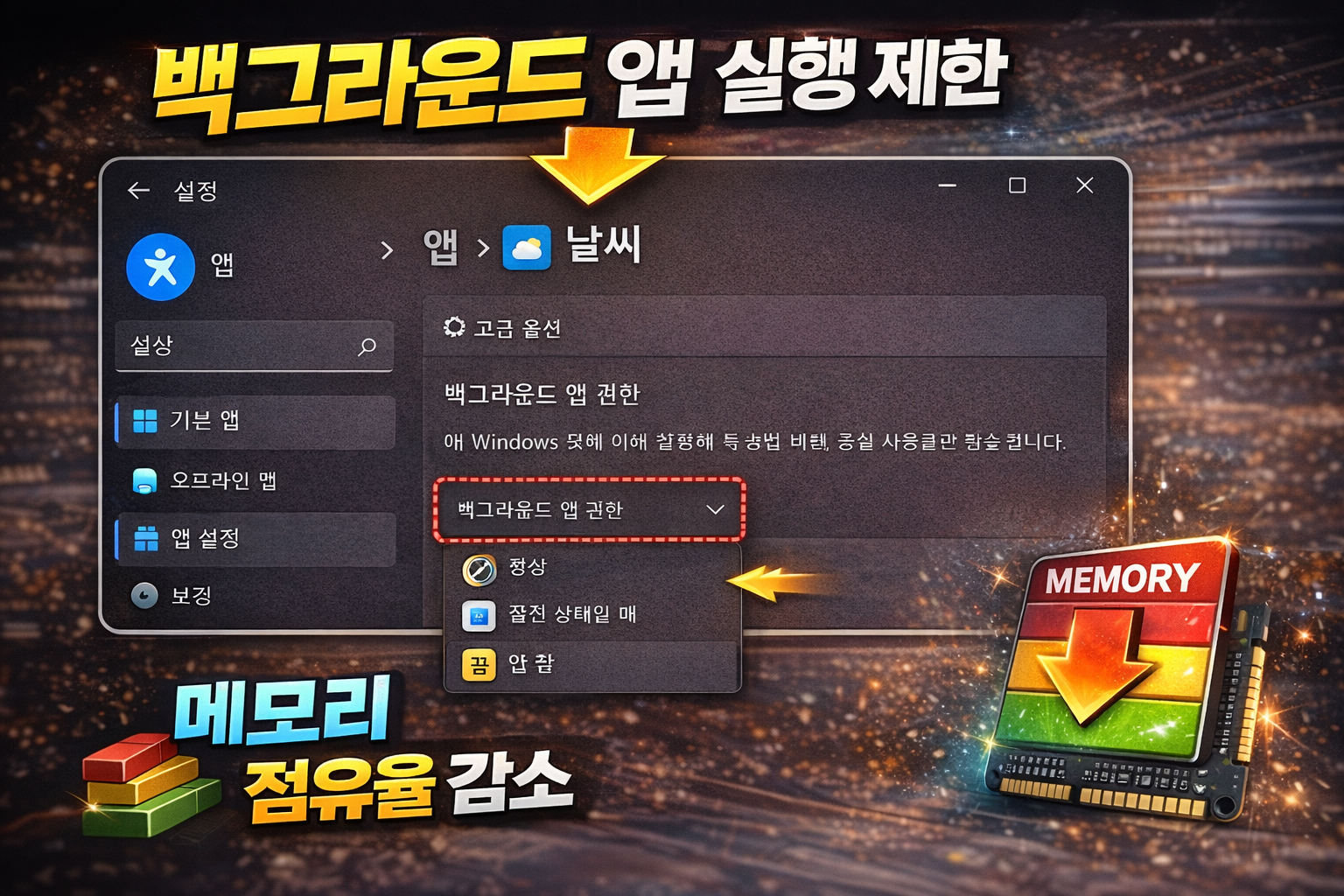 3️⃣ 백그라운드 앱 실행 제한 → 메모리 점유율 감소