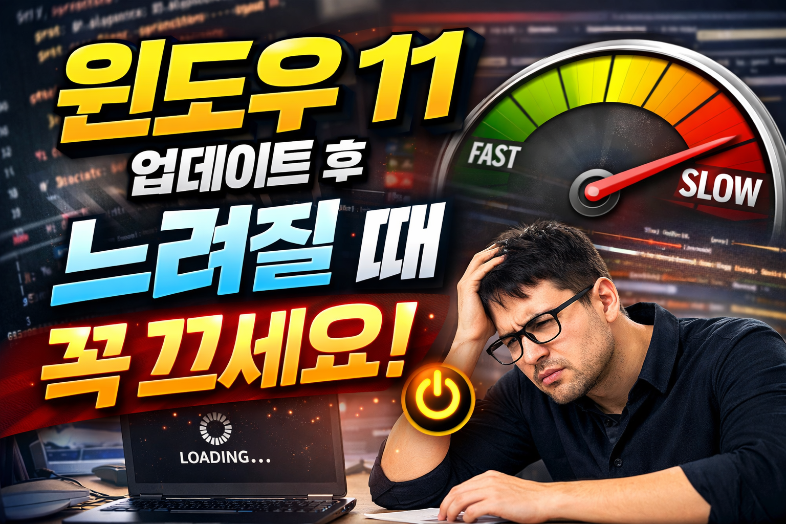 윈도우 11 업데이트 이후 부팅이 느려지고, 마우스가 버벅거리거나, 프로그램 실행이 답답해졌다면 PC 성능 문제가 아니라 기본으로 켜진 옵션 때문일 가능성이 큽니다.