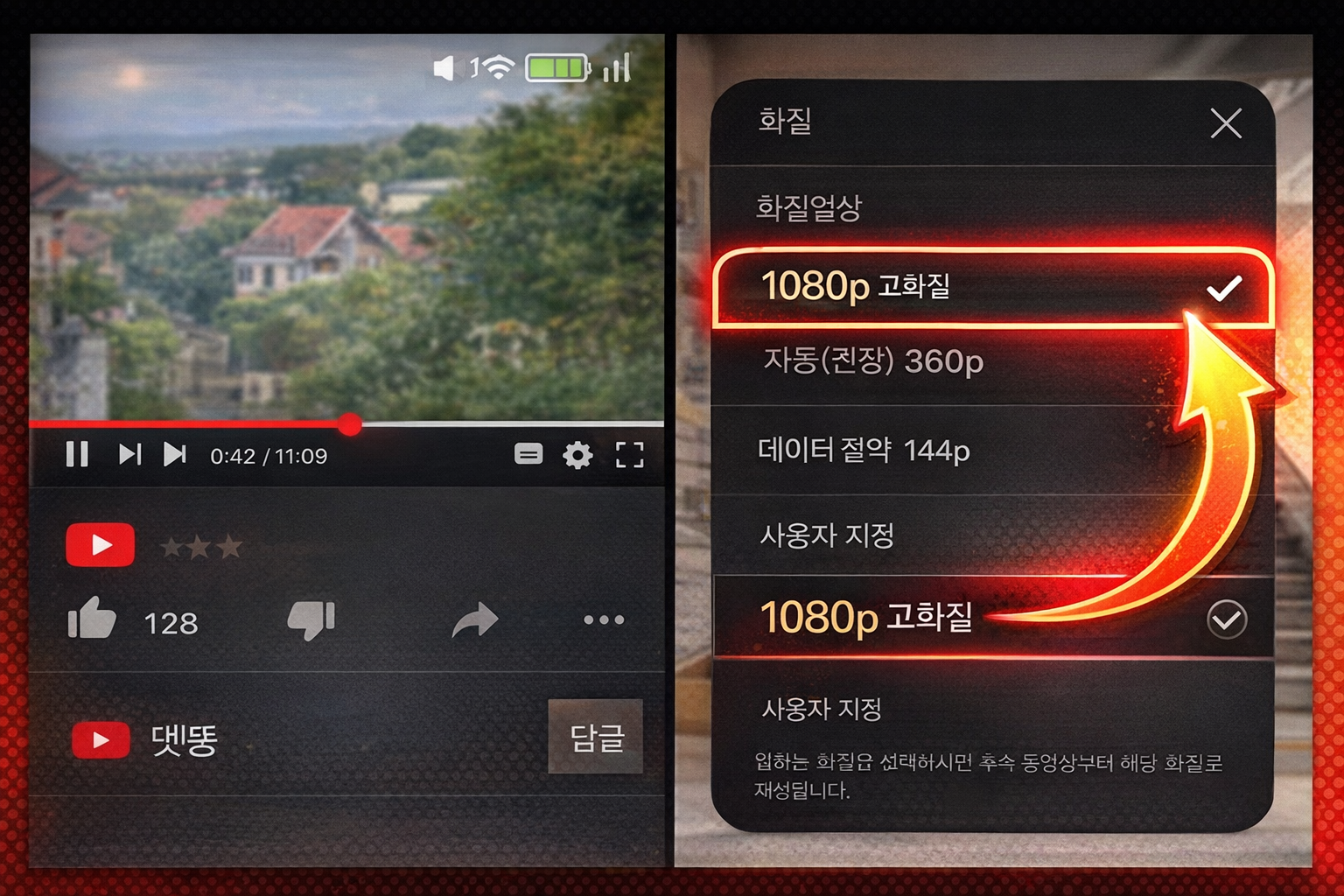 오늘은 유튜브 화질이 자동으로 떨어질 때 원인부터 해결 방법까지, 스마트폰(안드로이드/아이폰) + PC 기준으로 누구나 따라 할 수 있게 순서대로 정리해드릴게요.