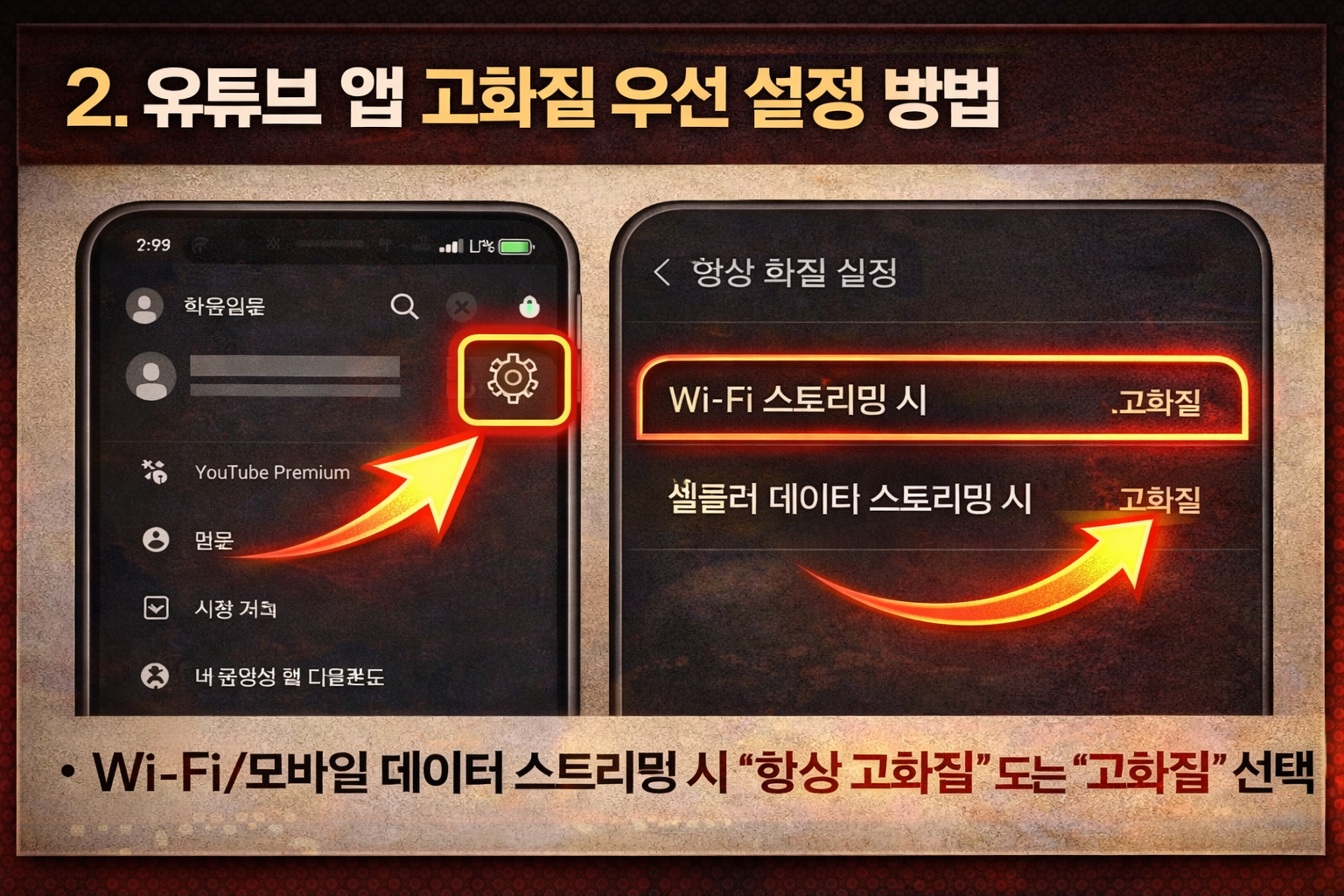 (1) 유튜브 앱에서 “고화질 우선”으로 고정하기
