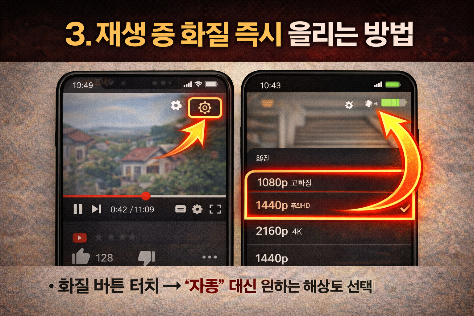 (2) 재생 중 화질이 떨어질 때 ‘즉시’ 올리는 법