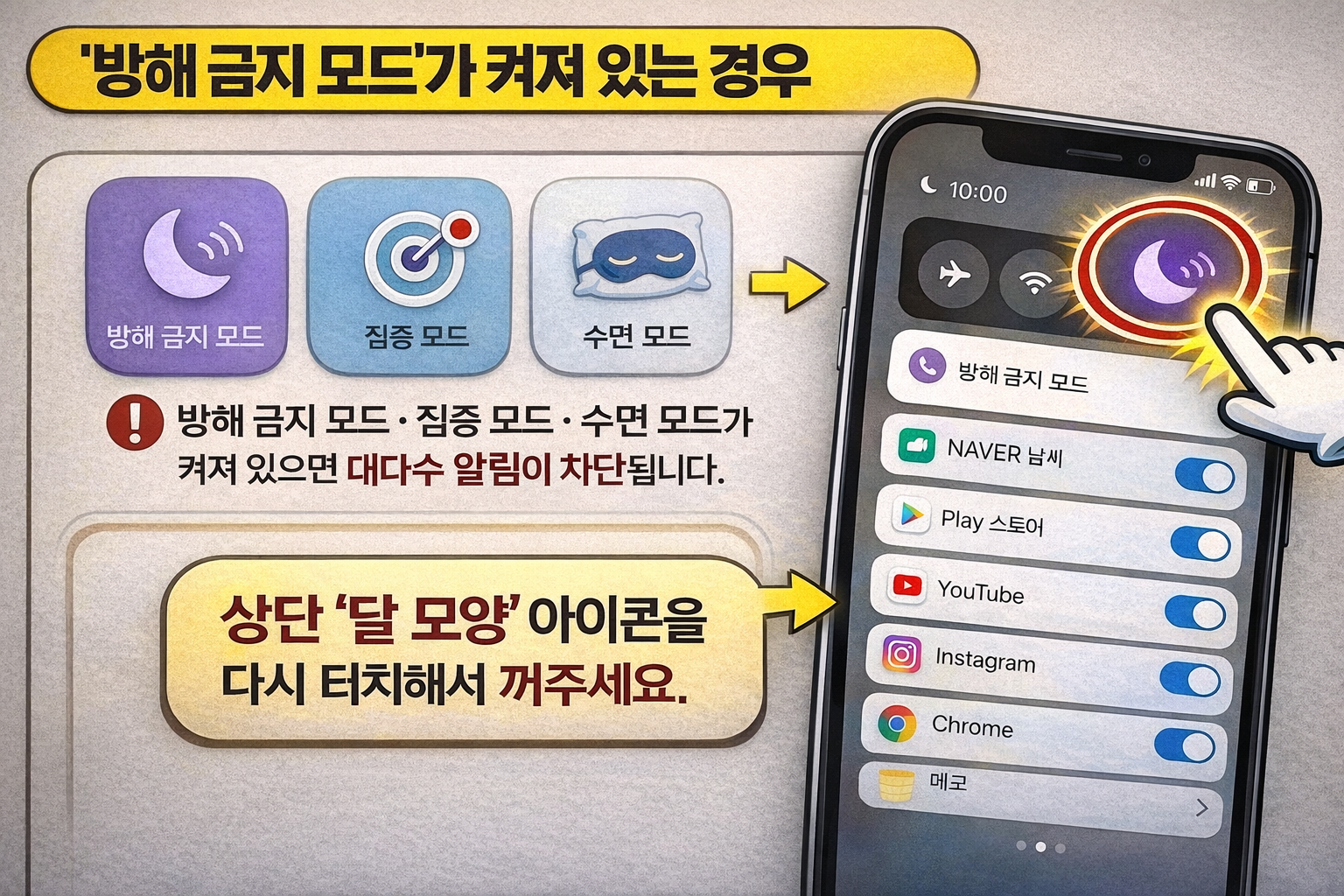 3️⃣ ‘방해 금지 모드’가 켜져 있는 경우