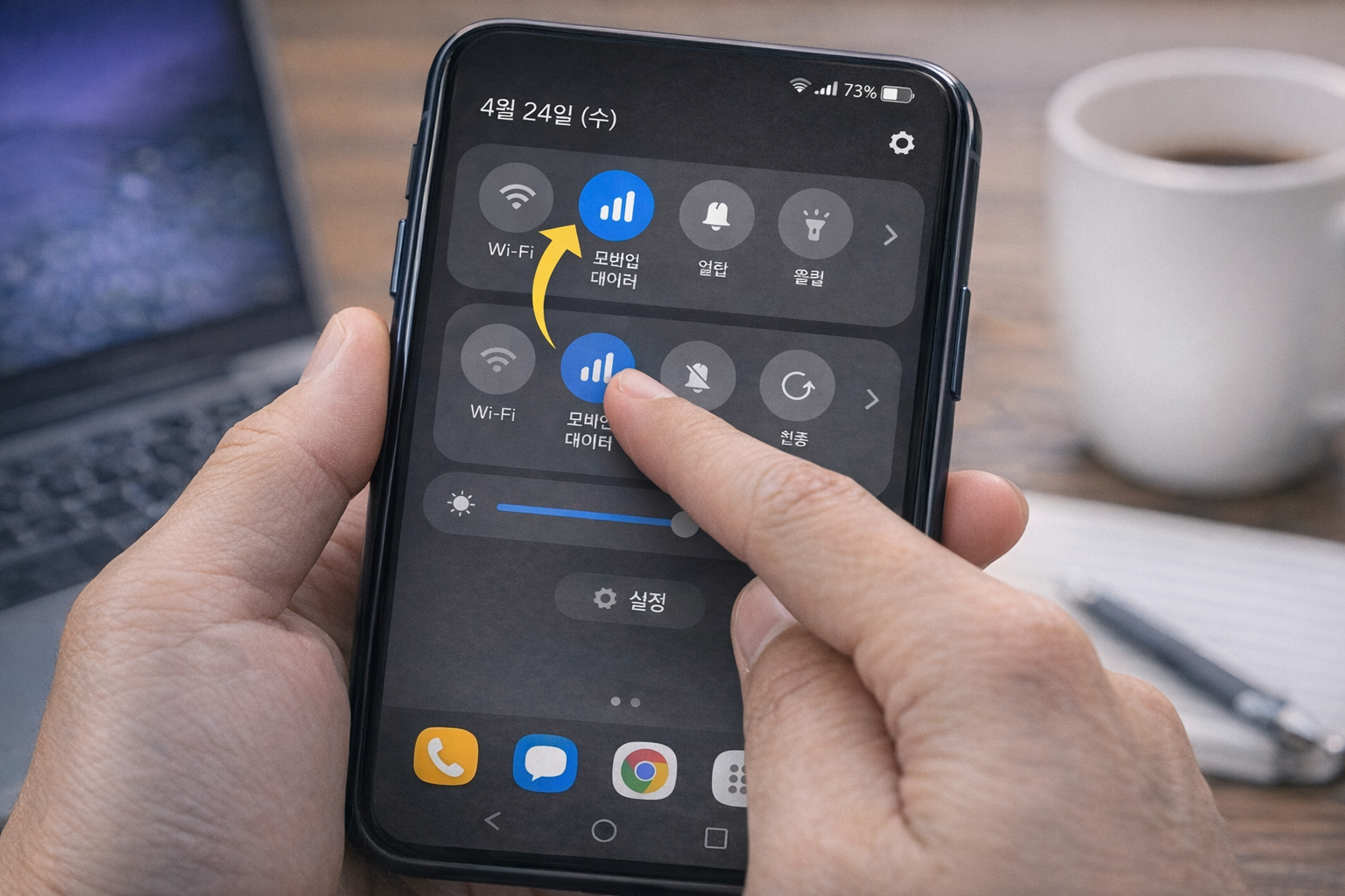 - 와이파이를 끄고 LTE 또는 5G로 전환