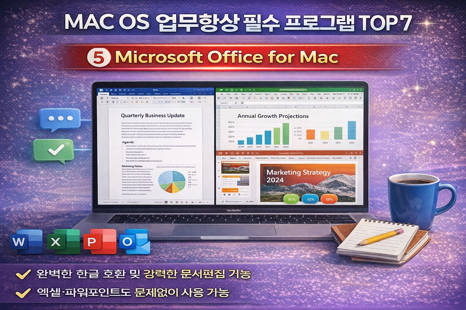 5️⃣ Microsoft Office for Mac – 결국 회사 업무의 중심 (Word/Excel/PPT)