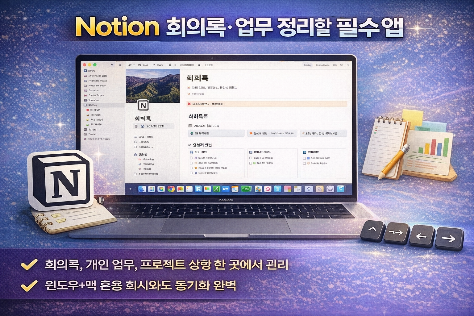 Notion은 회의록, 개인 업무 체크리스트, 프로젝트 진행 상황을 한 공간에서 정리할 수 있어