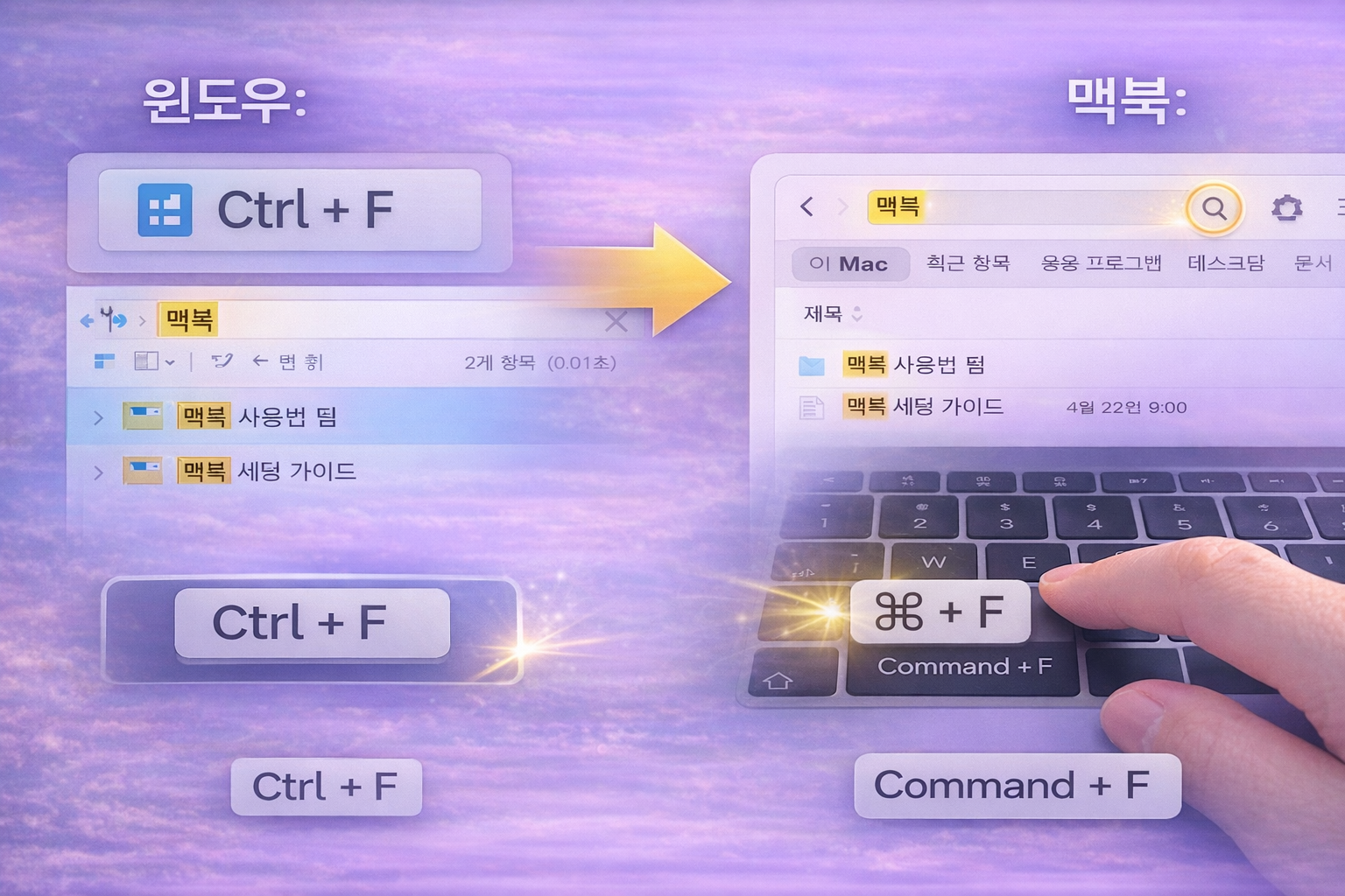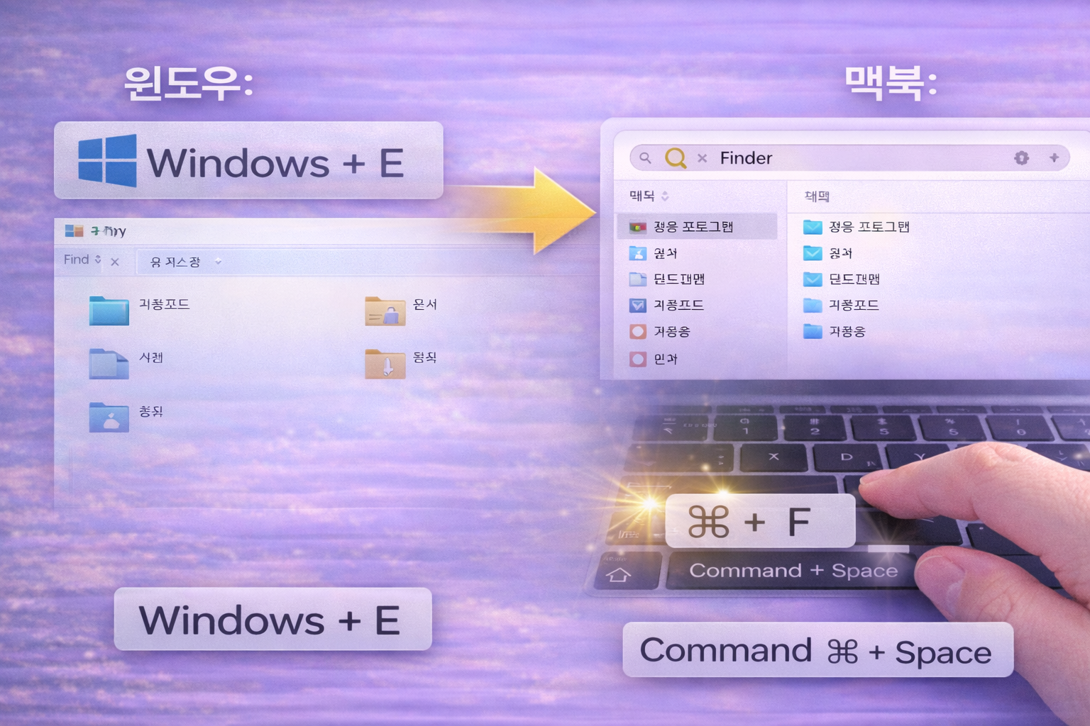 7️⃣ 파일 탐색(윈도우+E 느낌) – 맥은 “⌘+Space → Finder”