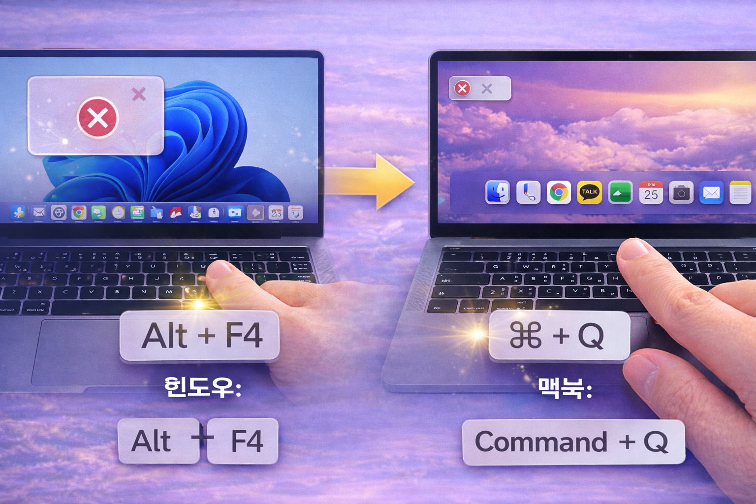 4️⃣ 프로그램 종료 – Alt+F4는 ⌘+Q로 기억하세요