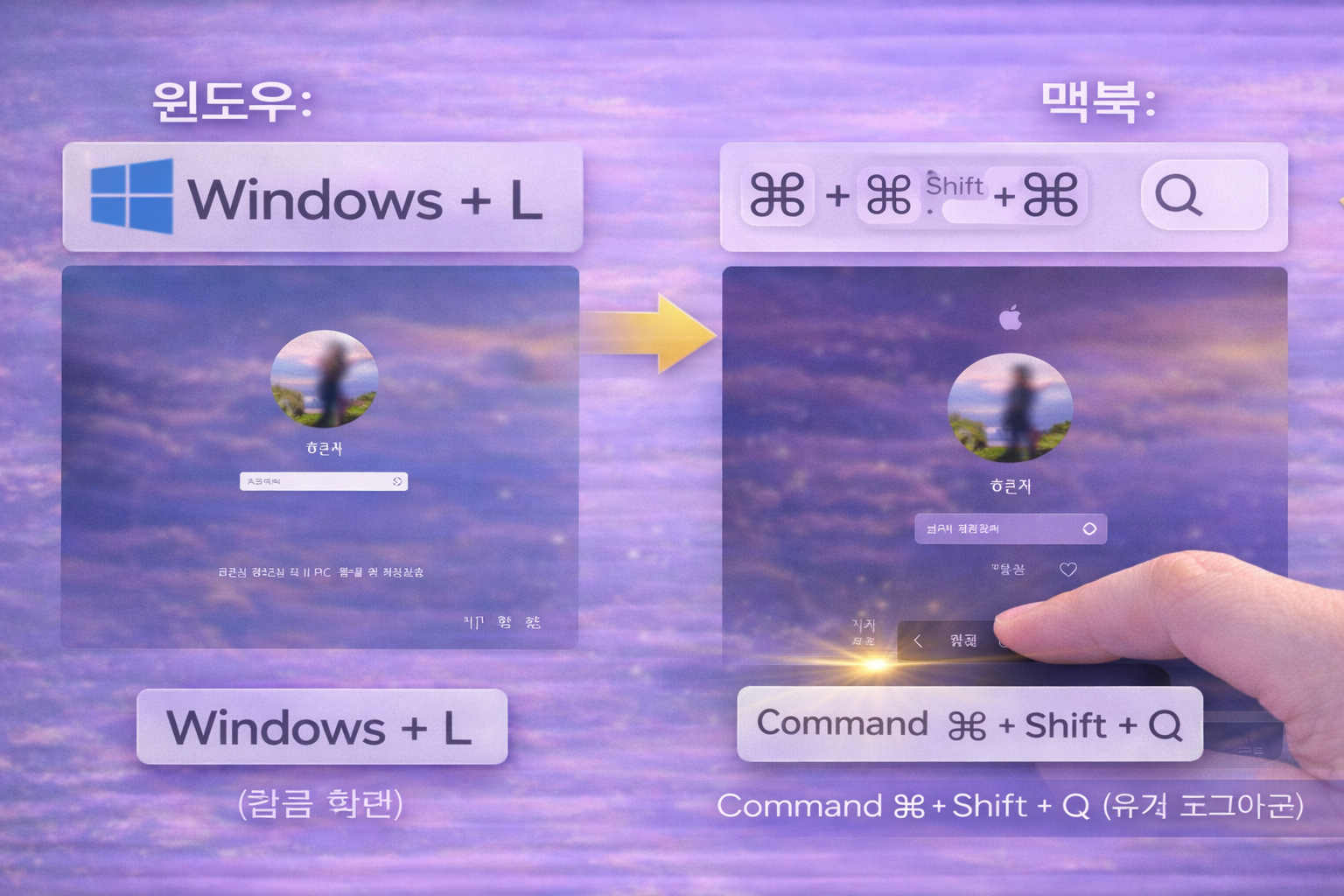 맥은 ‘잠금 화면’/‘로그아웃’ 방식이 조금 다르고, 회사 정책에 따라 단축키가 다르게 안내될 수 있어