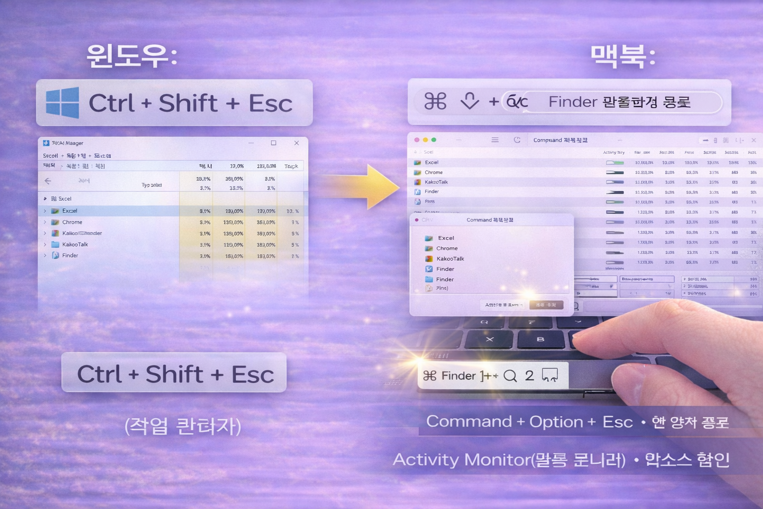 8️⃣ 작업 관리자 대체 – 멈춘 앱은 “⌘+⌥+Esc”로 강제 종료