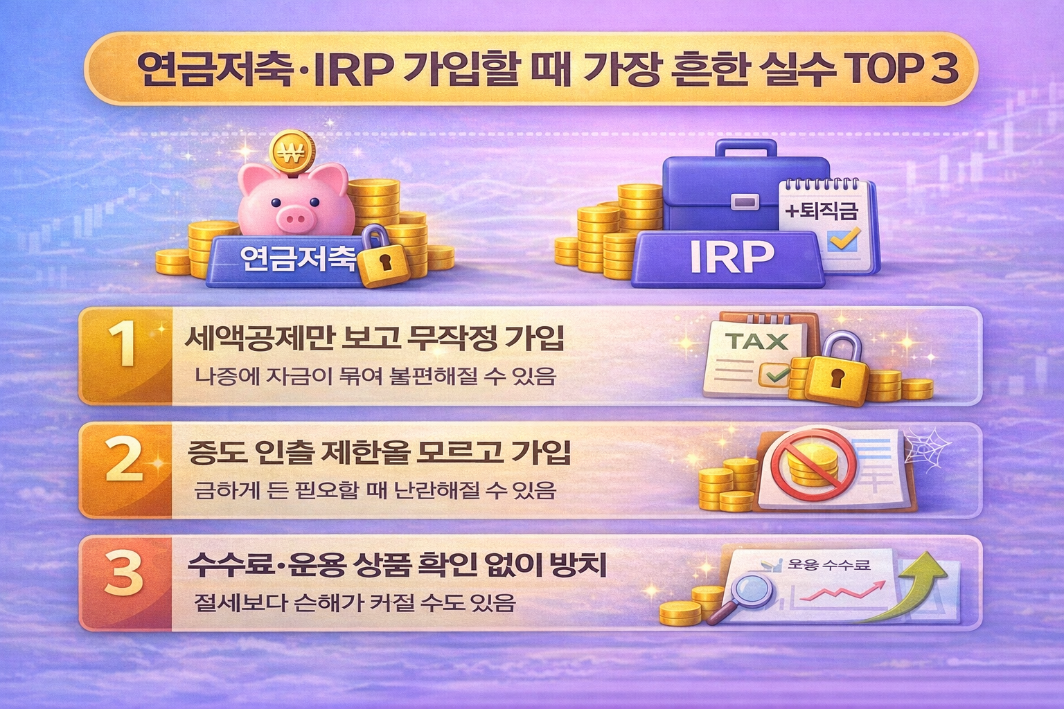 - 수수료/운용 상품 확인 없이 방치 → 절세보다 손해가 커질 수도 있음