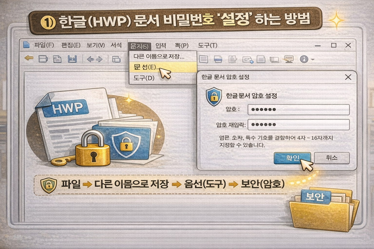 4) 한글(HWP) 문서 비밀번호 “설정”하는 방법