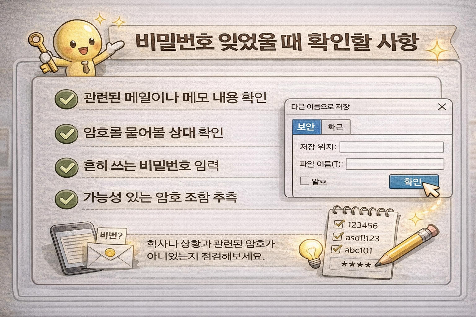 다음 글에서는 “비밀번호는 맞는데도 문서가 안 열릴 때(손상/권한/뷰어 문제)” 같은 실전 케이스도 따로 정리해드릴게요 😊