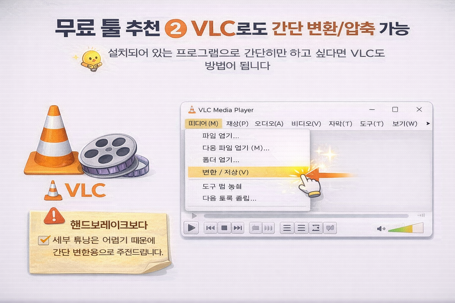 4) 무료 툴 추천 ② VLC로도 간단 변환/압축 가능