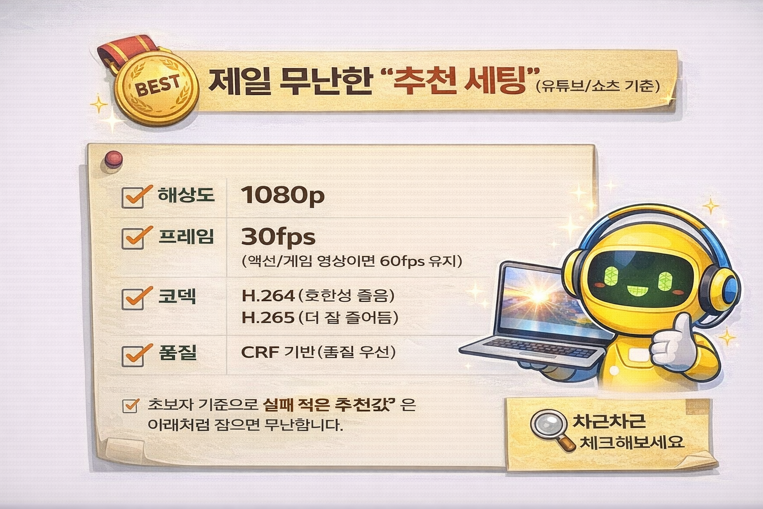 6) 제일 무난한 “추천 세팅” (유튜브/쇼츠 기준)