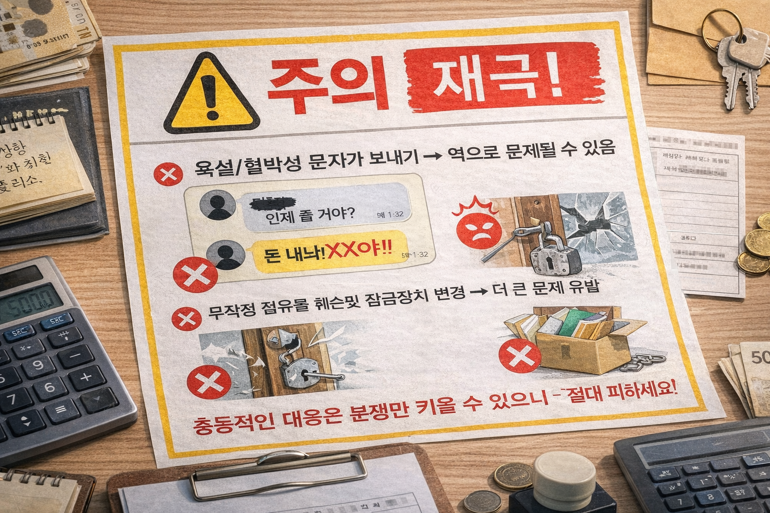억울해도 “증거 + 절차”로 가야 유리합니다. 특히 문자/카톡/통화 기록은 나중에 중요한 자료가 될 수 있으니, 대화는 최대한 정중하고 간단하게 남겨두는 걸 추천드려요.
