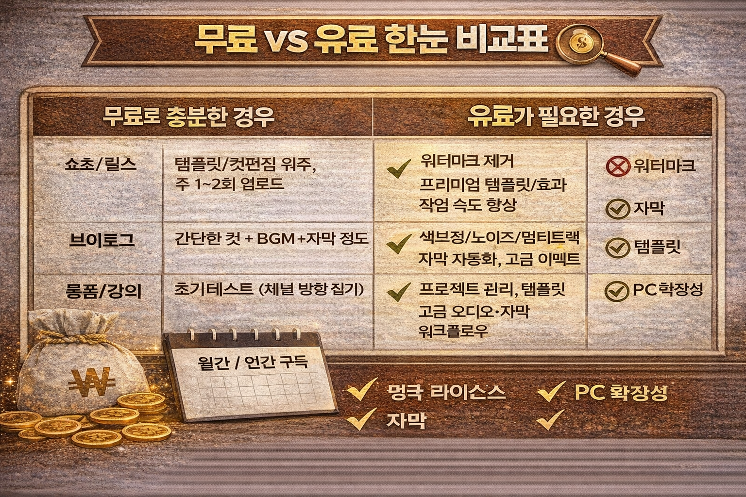 - 무료 vs 유료 한눈 비교표
