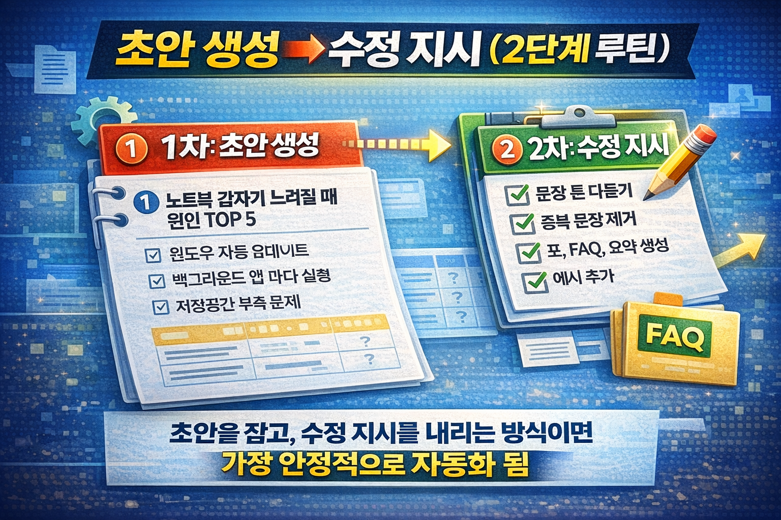 3) ‘초안 생성 → 수정 지시’ 2단계로 돌리면 자동화가 된다