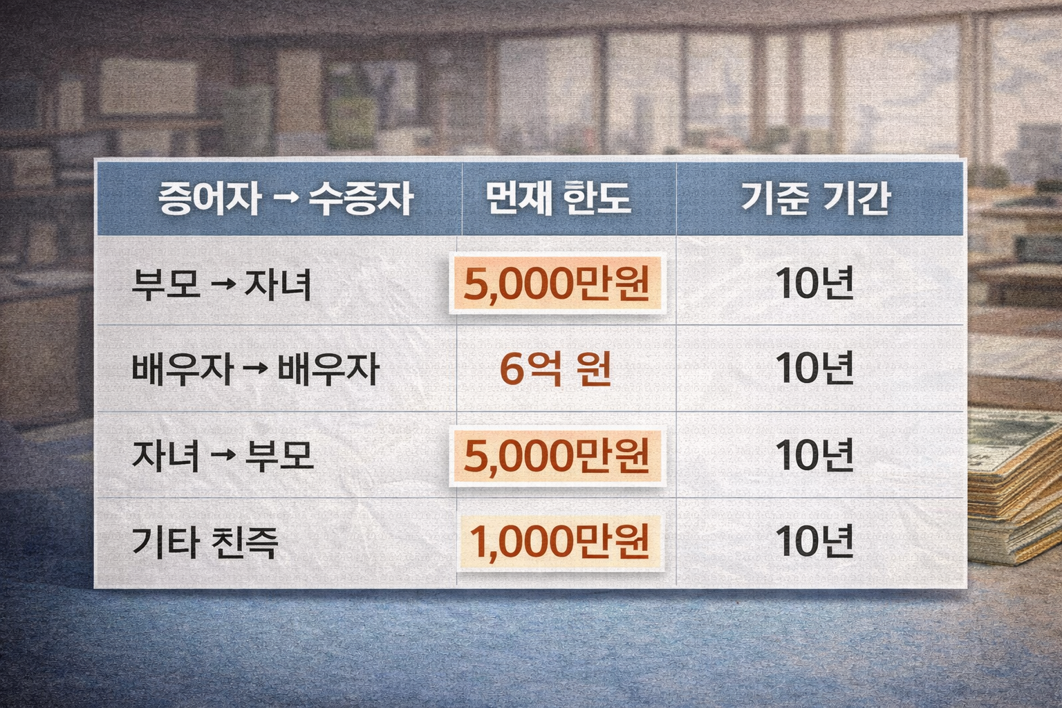 증여세 면제 한도 총정리 (부모·자녀·배우자 기준, 헷갈리는 포인트 정리)