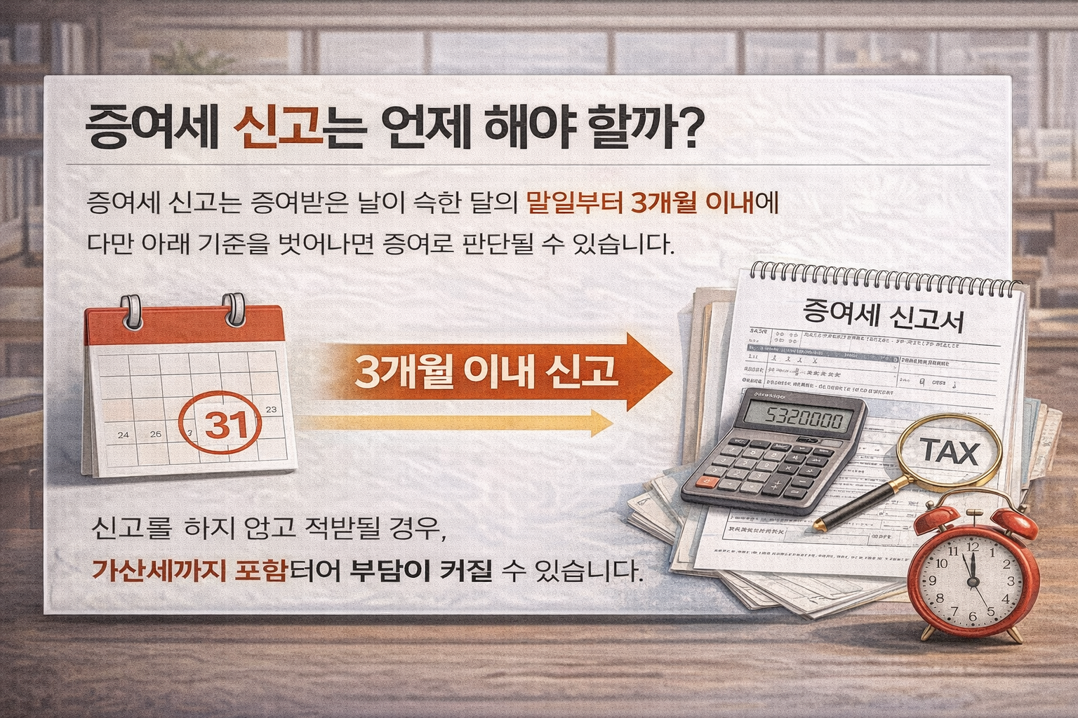 증여세 신고는 증여받은 날이 속한 달의 말일부터 3개월 이내에 해야 합니다. 면제 한도 이내라도 신고를 해두면 추후 분쟁 예방에 도움이 됩니다.