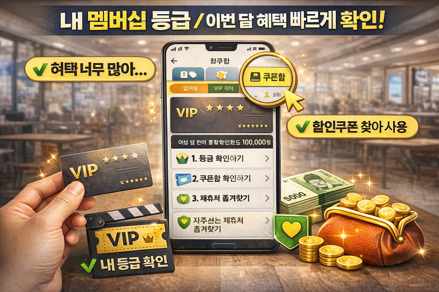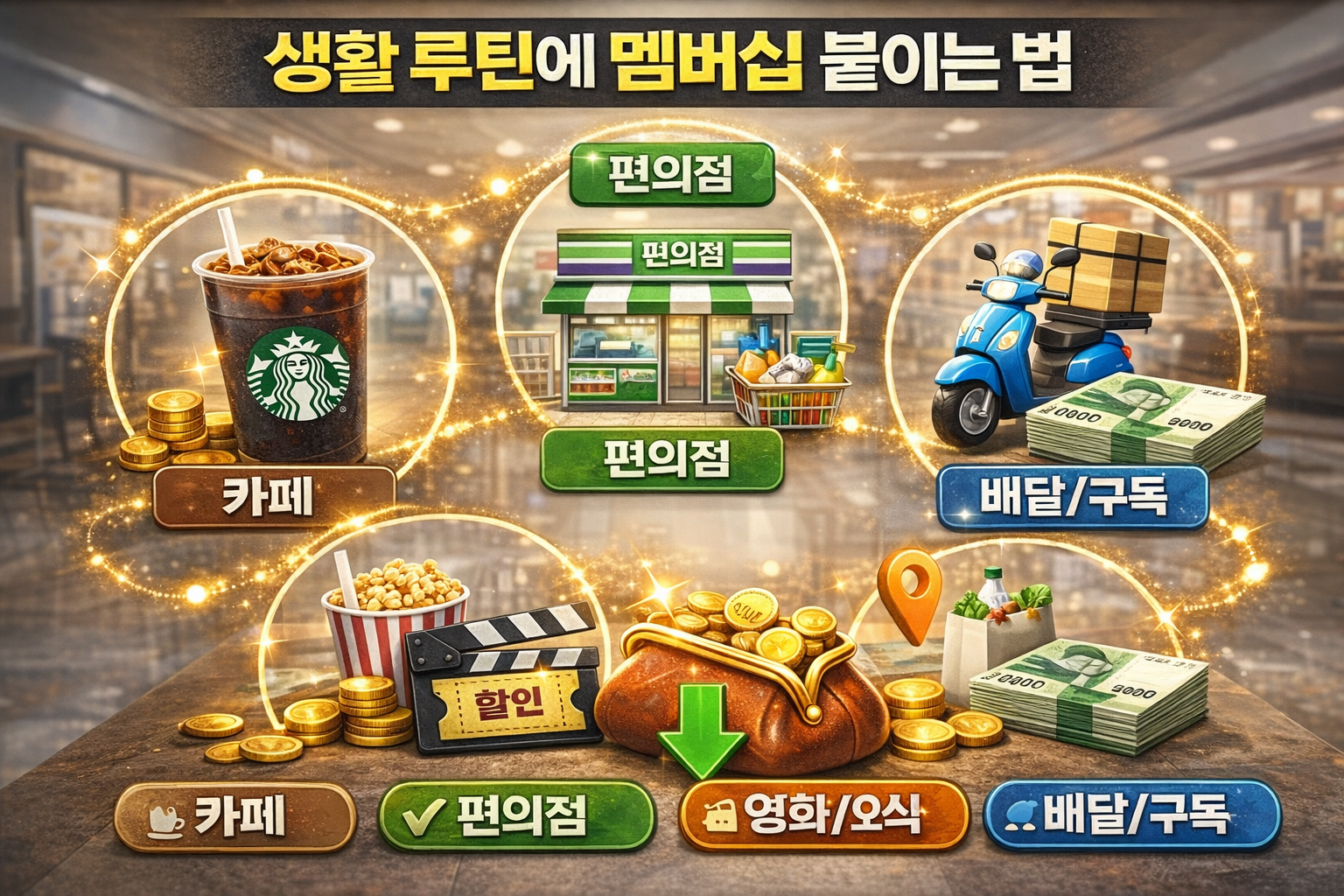 멤버십을 진짜 잘 쓰는 분들의 공통점은 “딱 4군데”만 잡아놓고 반복합니다. 아래 4가지 중 본인 생활에서 2개만 고정해도 체감이 확 와요.