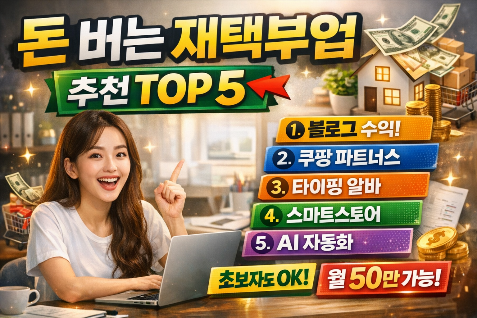 재택부업 추천 TOP5|집에서 돈 버는 현실적인 방법