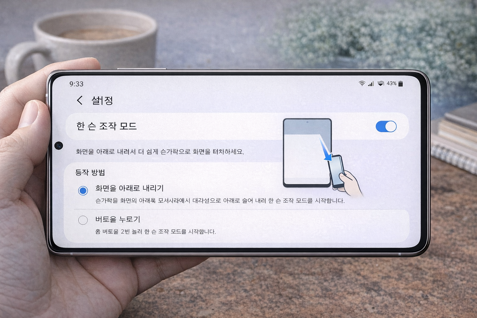 1) 한 손 조작 모드로 화면을 ‘내 손 안’으로 줄이기