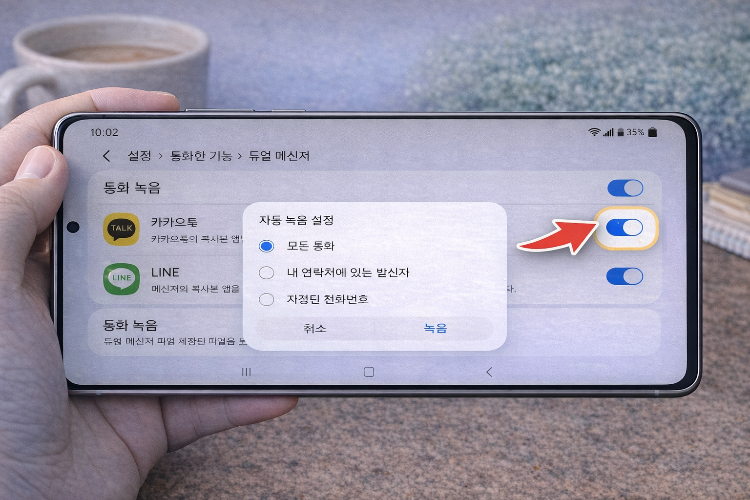 7) 통화 녹음(자동/선택) 설정으로 중요한 통화 기록 남기기