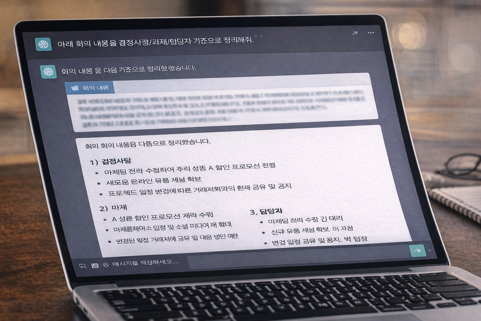 녹취 텍스트를 복붙하고, 이렇게 요청하세요.