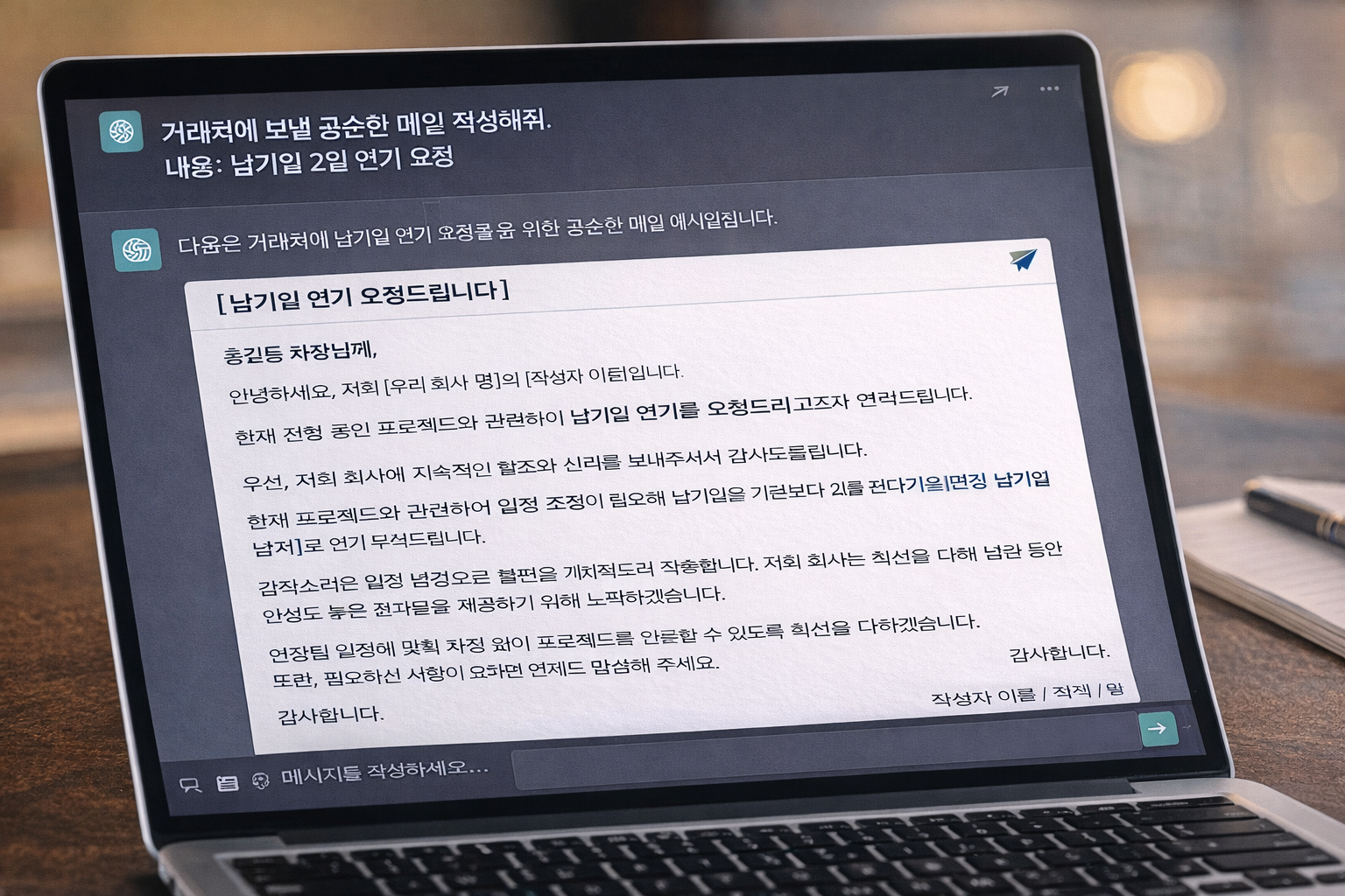 그런데 지금은, 보고서·메일·정리 업무 대부분을 ChatGPT로 10분 안에 처리하고 있습니다.