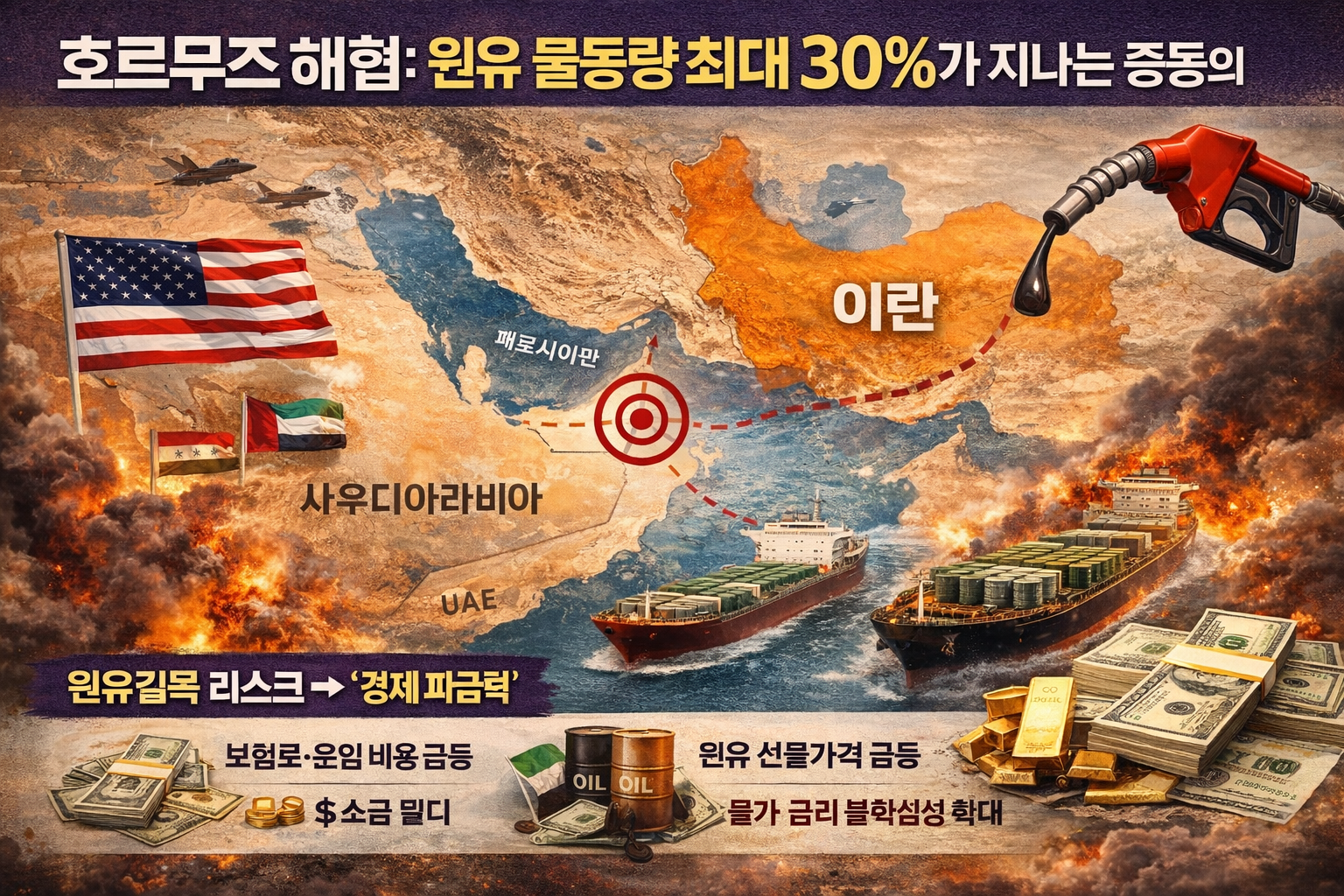 | 중동 패권 | 길목 통제(억지력)으로 영향력 유지 | 확전/협상 뉴스에 따라 변동성 확대 |