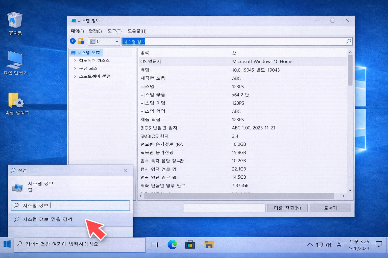 1️⃣ Windows 검색창에 시스템 정보 입력