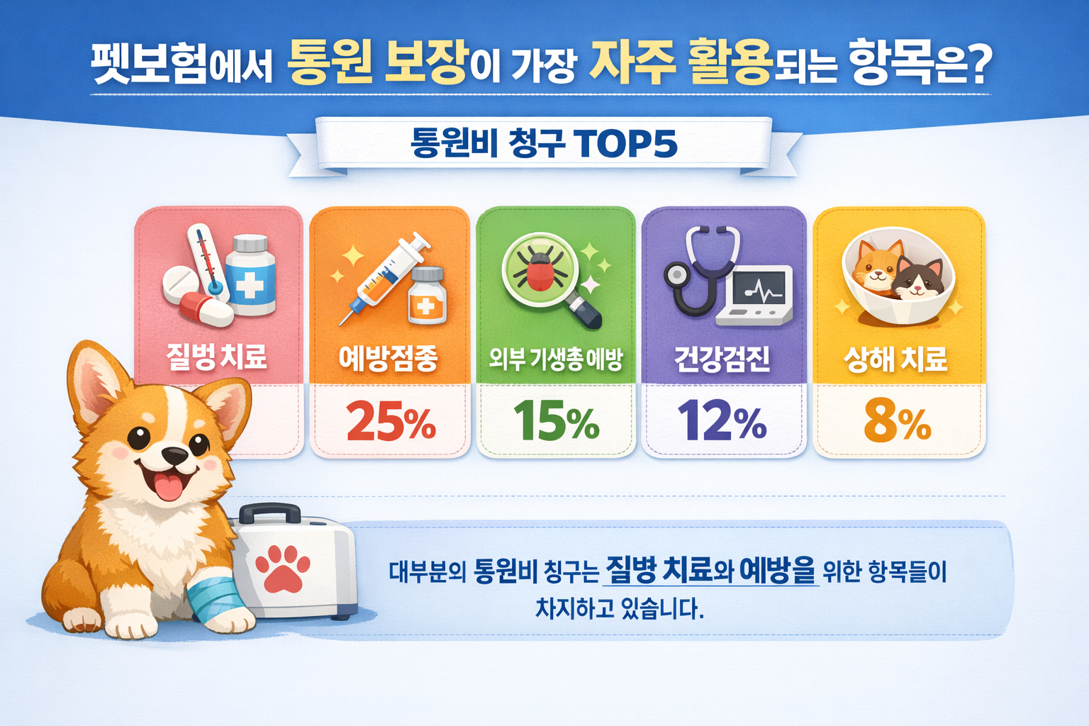 1. 펫보험의 기본은 ‘질병·상해 치료비 보장’입니다