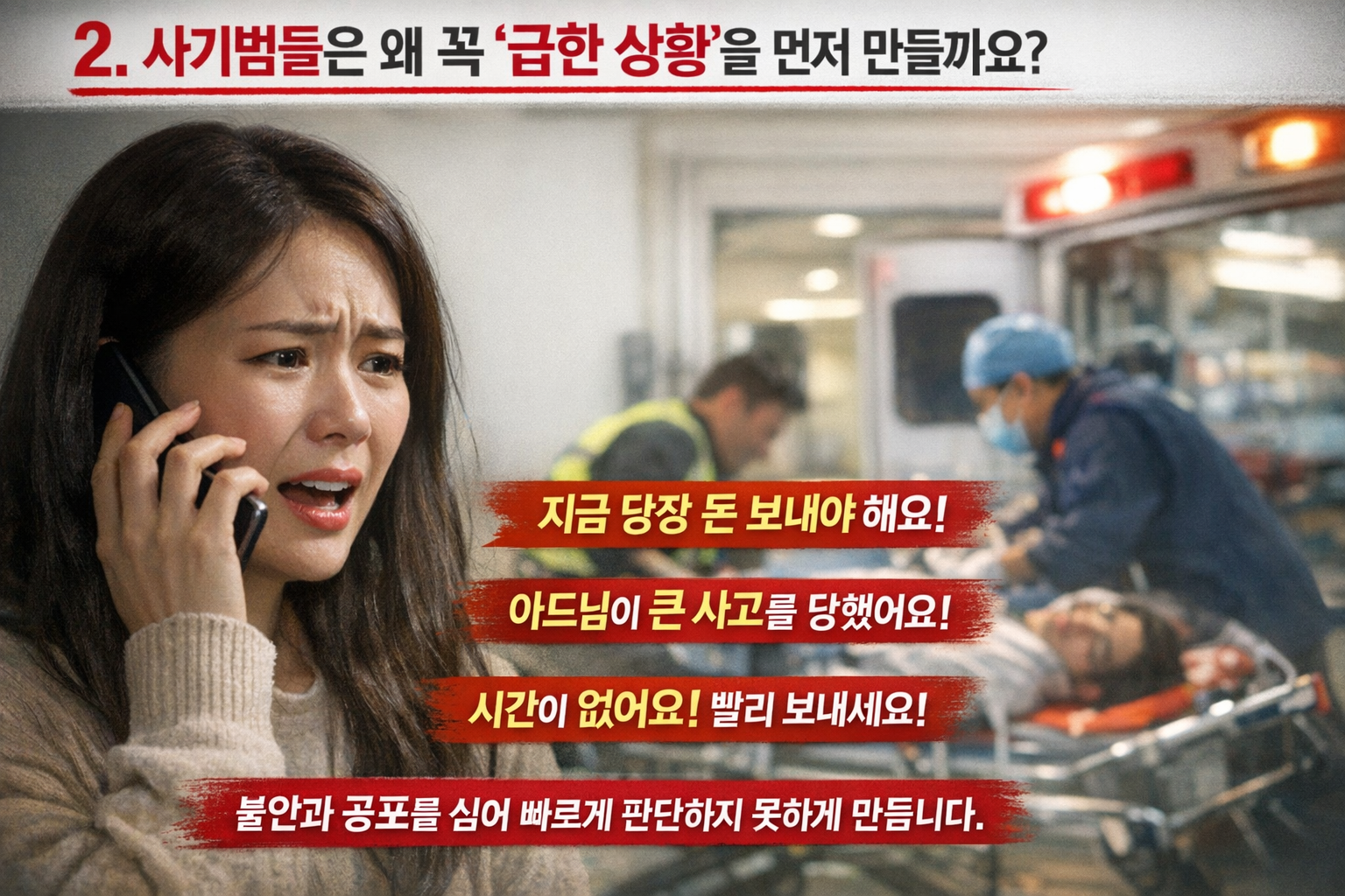 2. 사기범들은 왜 꼭 ‘급한 상황’을 먼저 만들까요?