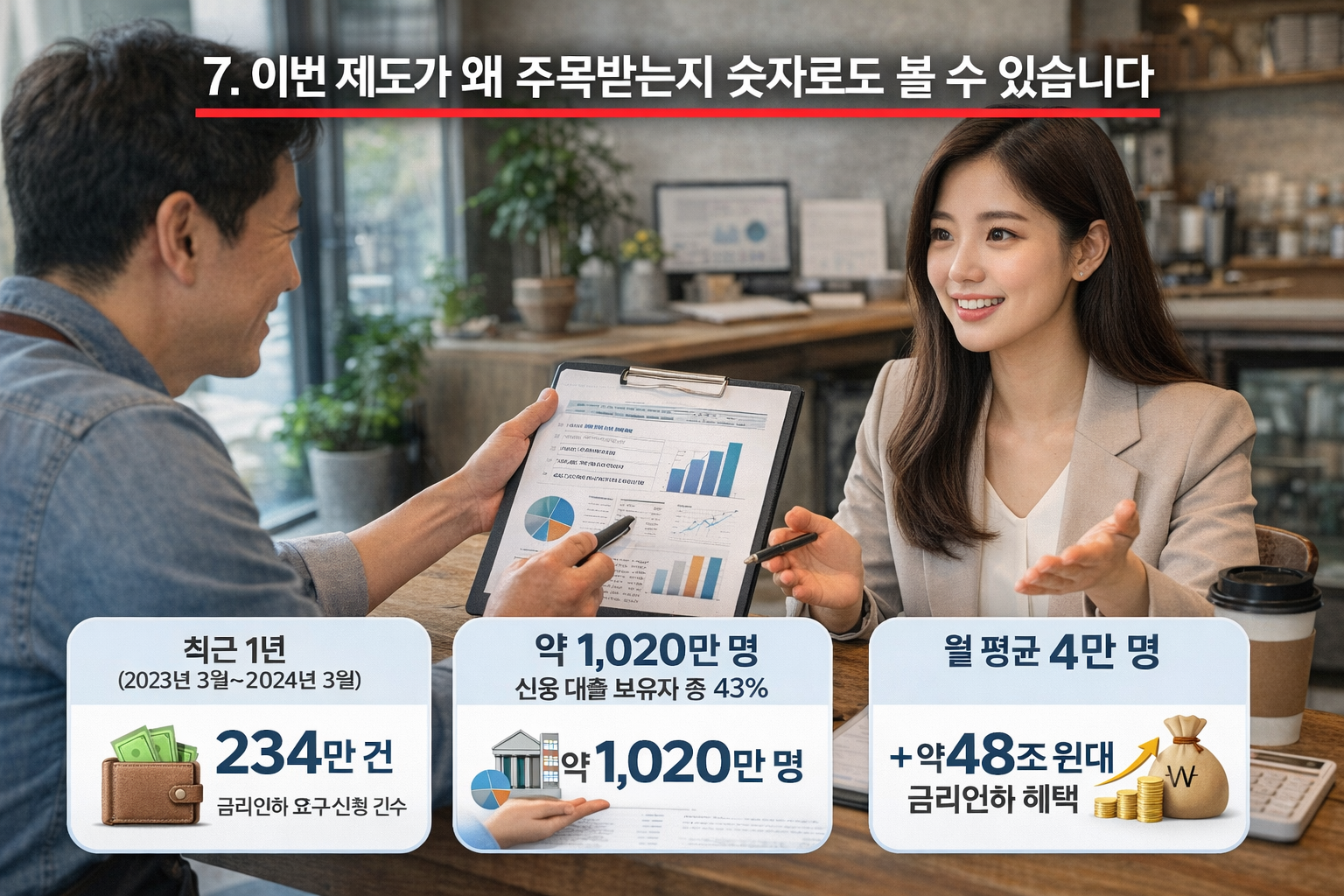 즉, 이번 서비스가 주목받는 이유는 화려한 AI 이미지 때문이 아니라, 소비자가 실제로 느끼는 불편을 건드렸기 때문입니다. “금리 내려갈 수도 있었는데 내가 신청을 안 해서 놓쳤다”는 아쉬움을 줄여준다는 점에서 실질적인 체감도가 높은 제도라고 볼 수 있습니다.