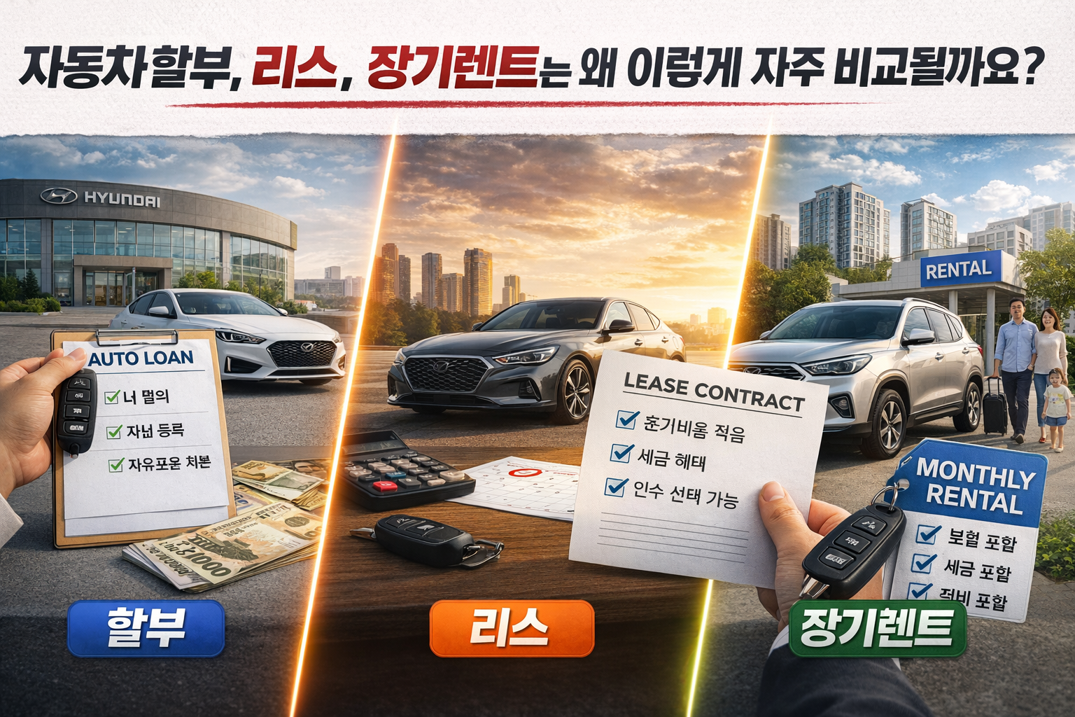 1. 자동차 할부, 리스, 장기렌트는 왜 이렇게 자주 비교될까요?
